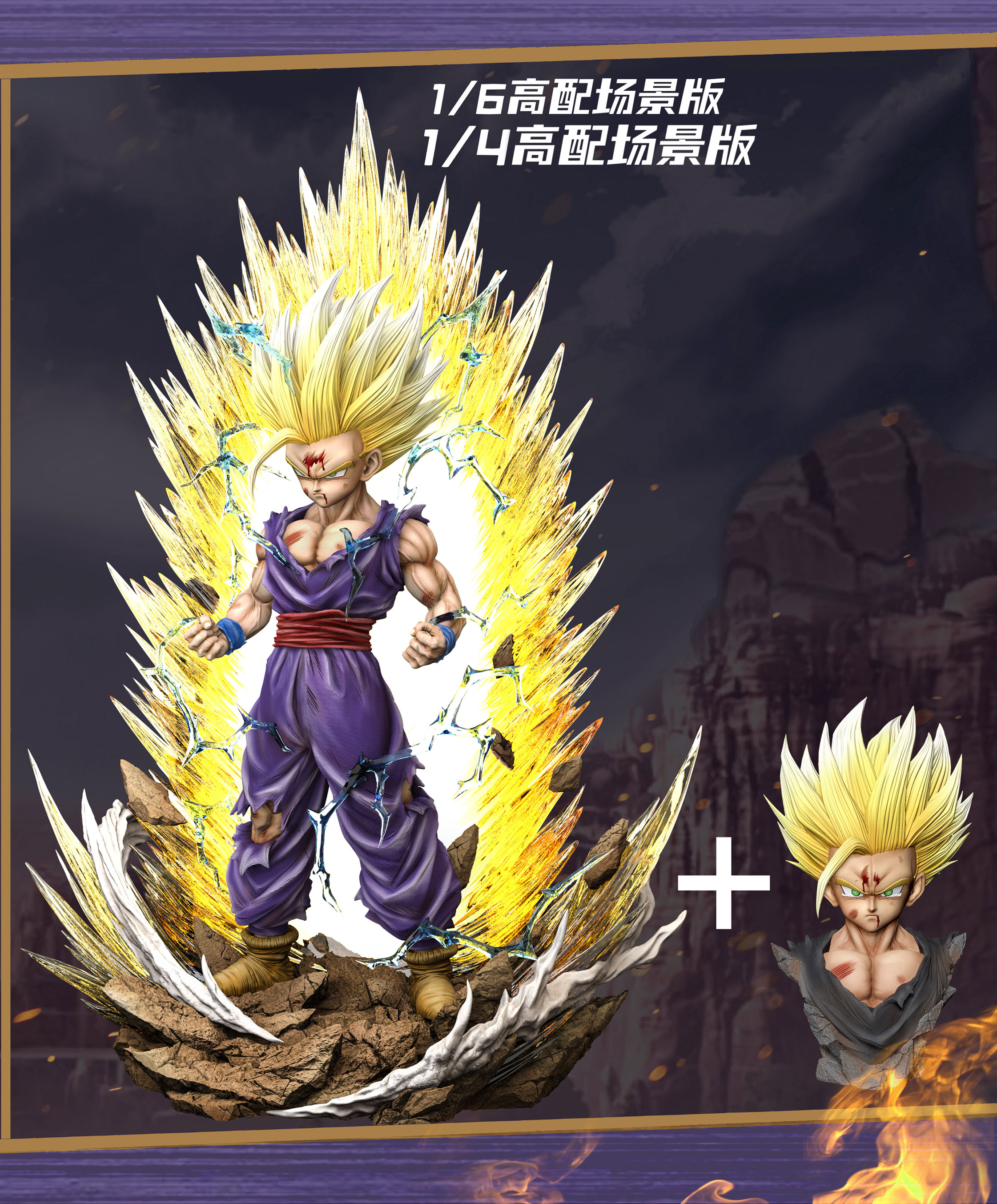 - Advanced with LED Ver.:Character + TWO Head Sculpt + Bust Statue + Explosive Scene Base with LED.